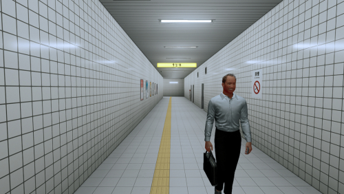 На фоне японских подземных переходов, сочетание лиминальных пространств и сюрреализма нагнетает особую тревожность. Задача также усложняется повторяющимся окружением, которое при длительном рассмотрении вызывает дискомфорт и даже ощущение замкнутости.