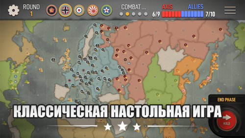 Axis & Allies 1942 Online – это захватывающая пошаговая стратегия на Android, основанная на классической настольной версии, где вы выступаете в роли одной из мировых держав Второй мировой войны.