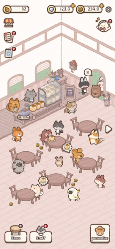 Одна из важнейших особенностей игры – это возможность нанимать персонал. Вам предстоит собрать команду из разнообразных персонажей, начиная от пятнистых кошек и милых зайчиков до неожиданных гостей вроде черепашек-ниндзя.