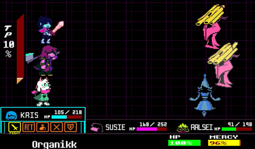 Игровой процесс в каждой из глав предлагает увлекательную тактическую боевую систему, смешанную с элементами bullet hell. Вам придётся сочетать атаки, магию, защиту и уникальные способности, чтобы решать судьбу врагов - пощадить их или победить силой.