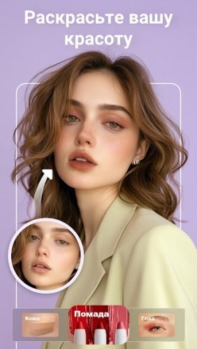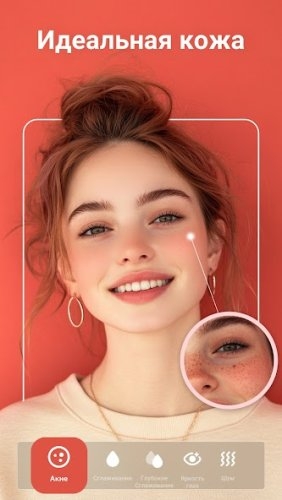 - Инструменты ретуши, включая сглаживание кожи и осветление глаз.