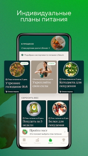 - Планы питания: персонализированные программы, собранные из легкодоступных рецептов.