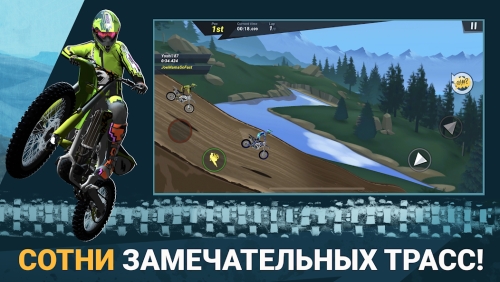 Вас ждут сотни уникальных трасс, которые проверят на прочность вашу скорость, точность и реакцию. Управляйте мотоциклом, используя продвинутую систему физики, и совершайте головокружительные прыжки и "випы" — стильные трюки, ставшие символом профессионального мотокросса.