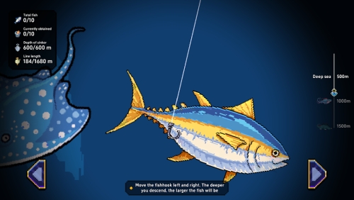 Ваша миссия — кормить голодных подводных «клиентов», которые подплывают к вашей станции. Для этого вам предстоит освоить искусство рыбной ловли, спуская крючок все глубже и глубже в поисках разнообразных морских обитателей. Основная задача заключается в том, чтобы наладить непрерывный цикл: поймать рыбу, подготовить её и подать проголодавшимся существам, зарабатывая на этом средства.