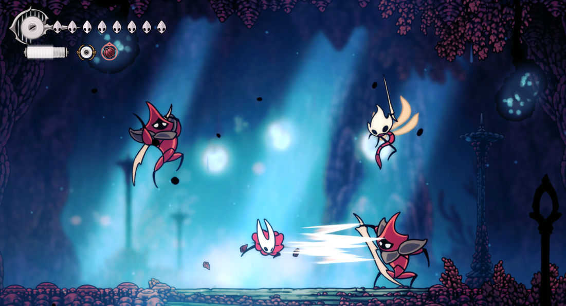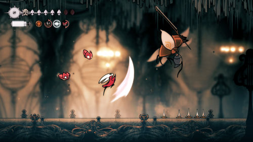 Геймплей Silksong предлагает более быструю и акробатическую боевую систему по сравнению с оригиналом. Хорнет грациозно передвигается по полю боя, используя рывки, высокие прыжки и атаки с воздуха. Вместо Душ она собирает шёлк, который можно мгновенно использовать для лечения, не прерывая динамику сражения. В вашем арсенале появятся новые инструменты и приспособления, такие как ловушки и бомбы, которые создаются из найденных материалов.