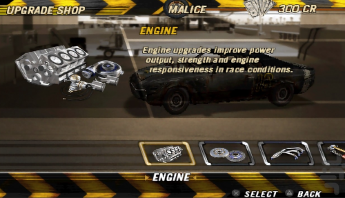 Заработанные деньги можно вкладывать в улучшение вашей машины: повышать мощность двигателя, прочность кузова, управляемость и нитро. Продвижение по карьерной лестнице открывает доступ к новым турнирам, более мощным классам автомобилей, включая гоночные болиды и внедорожники, и более сложным трассам.