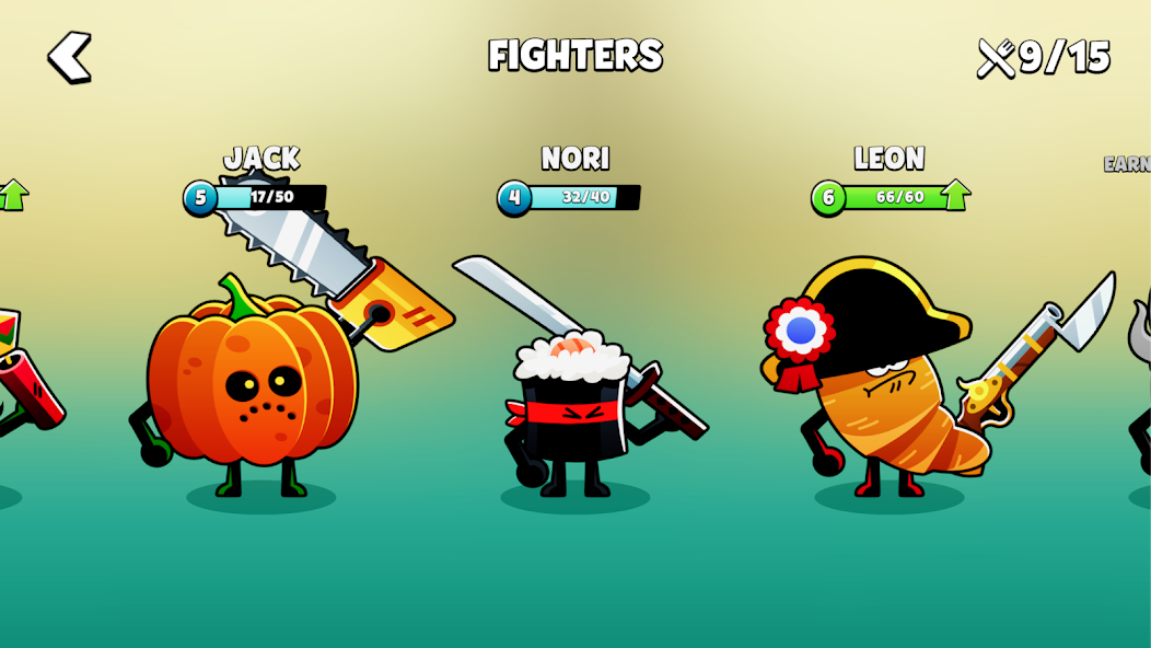 На выбор предоставляется 14 совершенно безумных персонажей. Каждый герой обладает уникальным набором характеристик и собственным стилем ведения боя. Например, жгучий перец отличается феноменальной скоростью передвижения, но проигрывает остальным в запасе здоровья.