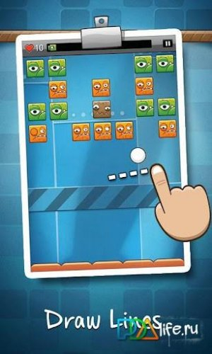 Возьмите под свой контроль мячик и начинайте войну против кубиков. Касательными движениями по экрану рисуйте линию, от которой будет отбиваться шарик и менять свою траекторию, уничтожая остальные предметы.