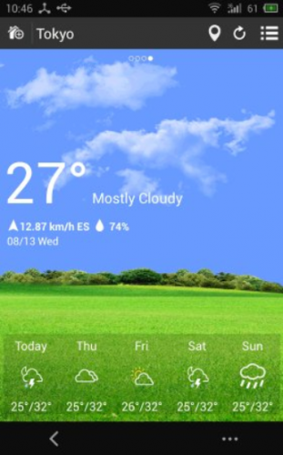 Узнайте о погоде с помощью визуальных эффектов в виде дождя, солнца и снега. Красивые блестящие погодные виджеты с часами прекрасно будут смотреться на вашем рабочем столе и станут его изюминкой. Прежде чем начать использовать виджет необходимо написать свое местоположения или использовать данные GPS. Переходим в раздел с ними, выбираем параметры и перетаскиваем в выбранное место на рабочем столе, затем нужно выбрать одну из нескольких блестящих тем.