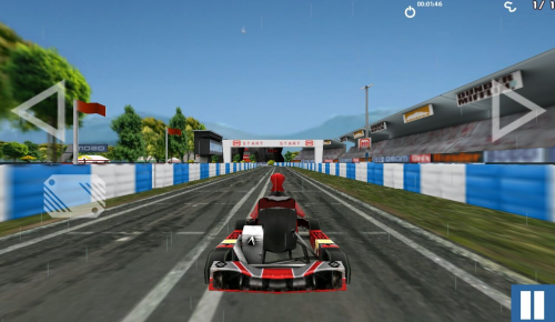 Управления сделано довольно просто - чтобы поворачивать вам нужно нажимать на боковые кнопки, а притормаживать нужно с помощью педали тормоза. Педали газа нет, картинг будет ехать автоматически и когда врежется в помеху, то остановиться и придется заново набирать скорость.