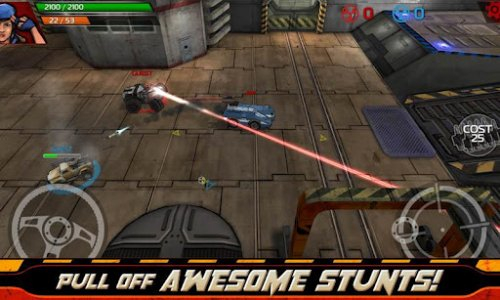 INDESTRUCTIBLE — это замечательный автомобильный экшен с динамичной 3D графикой, которая полна на разнообразные визуальные эффекты. Качественное управление сделано с помощью двух джойстиков, один управляет автомобилем, а второй пулеметом. Джойстик пулемета в некоторых ситуациях позволяет стрелять вверх, например, если на вас навалилась вражеская машина, вы можете стрелять ей по днищу.
