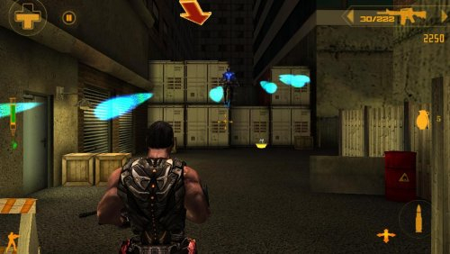 Главный герой управляется с помощью невидимого аналога. Меняйте угол обзора камеры с помощью движений пальцем по экрану. Приведите в действие свой автомат нажав кнопку огня.
