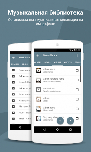 Вы можете изменить цвет главного фона, выбрав понравившийся в настройках программы и задать папки, в которых хранятся ваши музыкальные файлы. Приложение поддерживает плейлисты.