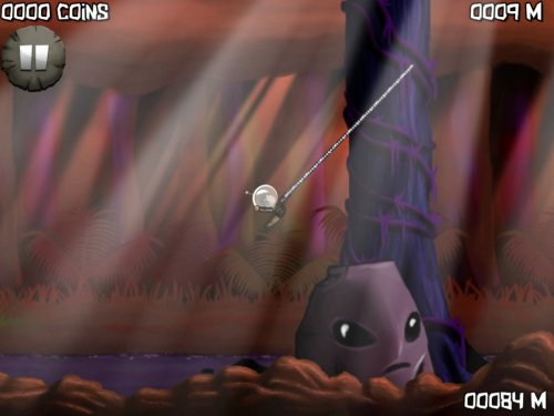 Передвигаясь по джунглям вас ждет множество сюрпризов, которые помогут вам добраться как можно дальше. Собирайте ракету фейерверка, для молниеносного ускорения и полета к звездам. Прицепляйте свою веревку к камням, летящим вверх, там вы найдете кучу золотых монет, а также дирижабли. Нажимайте на любой предмет на экране, чтобы герой схватился за него и начал качаться.