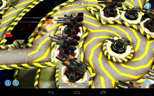 Вас ждет насыщенная 3D графика с возможностью прокрутки камеры с разных сторон. Большая трехмерная дорога с несколькими ярусами, вдоль которой расставлены специальные места для установки пушек. Приближайте камеру к любому месту и смотрите в деталях на свое оружие или как происходит схватка. Выдержите все волны наступления врагов, развивая свои ресурсы и строя новые башни.