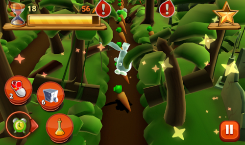 Поворачивайте и перепрыгивайте используя слэш-движения - проведите пальцем по экрану в нужном направлении для выполнения действия. Собирайте дополнительные бонусы в виде времени, сверхскорости, кубиков льда и лабораторные мензурки. На вашем пути будут встречаться, злые кролики, кроты, ёжики, а также небольшие лужи воды, которые будут тормозить вас.