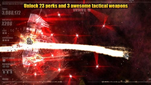 Вам предстоит защищаться от наступающих со всех сторон вражеских кораблей, а также больших монстров. Набирайте очки для повышения своего боевого уровня и открытия дополнительных позиций. Подкручивайте звук собирая специальные значки, что позволит вам полностью погрузиться в процесс. Собирайте значки повышения мощности своего оружия, чтобы получить максимальный световой эффект.